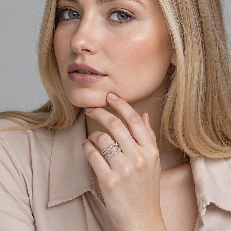 Verwandeln Sie Ihren Ring mit diesem bezaubernden Ringverstärker in ein absolutes Highlight. Sein verschlungenes Design symbolisiert die unzerbrechliche Liebesbindung, während pavé-besetzte Steine luxuriösen Glanz verleihen. Zarte Perlstabbearbeitungen veredeln das Design mit vintagem Charme und schaffen eine perfekte Balance aus Eleganz und Detailreichtum. Eine exquisite Ergänzung zur Veredelung jedes Verlobungsrings.
