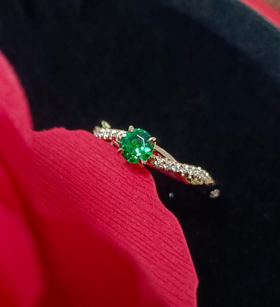 Anmutig präsentiert dieser Seitenstein-Verlobungsring einen faszinierenden Mittelstein, umrahmt von einem geflochtenen Design am Schank. Eine Seite besteht aus glattem Metall, während die andere mit funkelnden Steinchen besetzt ist. Heirate mich - ich verspreche, dir all meine Zärtlichkeit zu schenken!