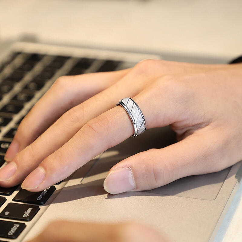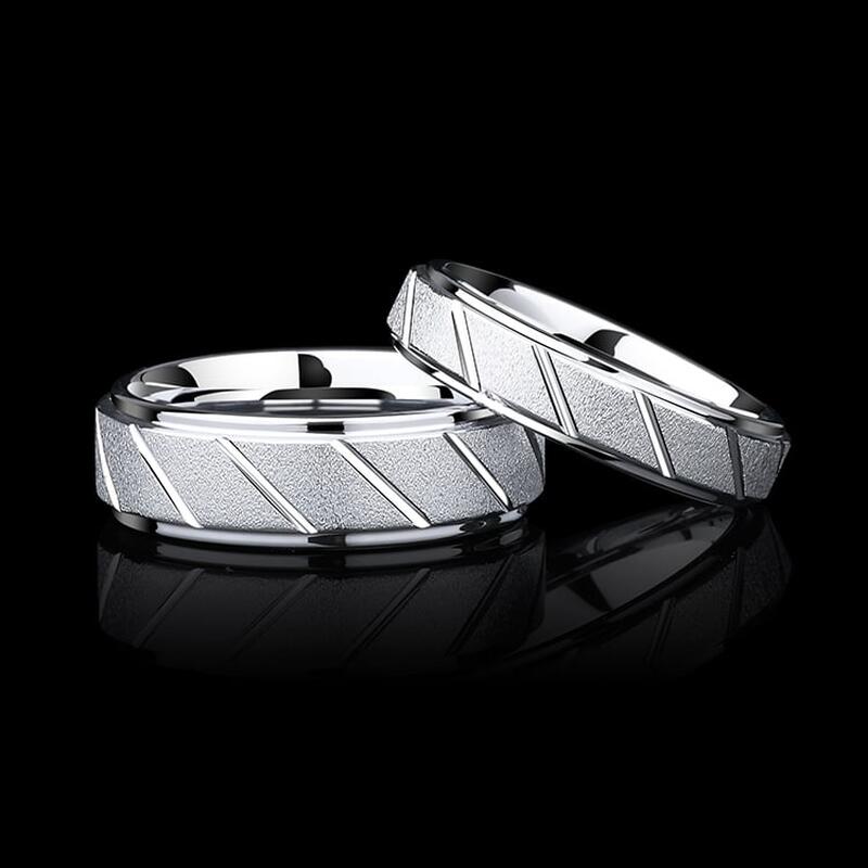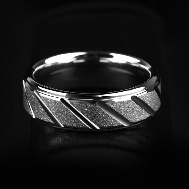 Gefertigt aus 85% hypoallergenem Wolframkarbid, bietet dieser Ring hervorragende Kratzfestigkeit und lebenslange Haltbarkeit. Die sandgestrahlte Mattoptik verleiht ein dezentes Industriedesign, während die abgeschrägten Stufen und diagonalen Rillen die technische Ästhetik unterstreichen – perfekt für Träger, die Wert auf Substanz und subtile Raffinesse legen.
