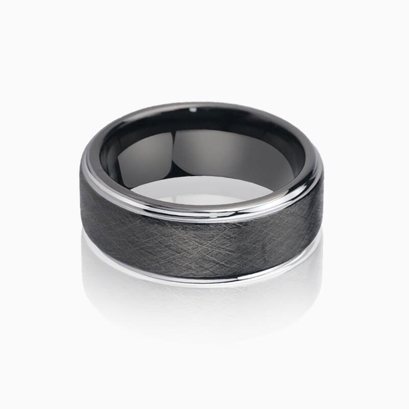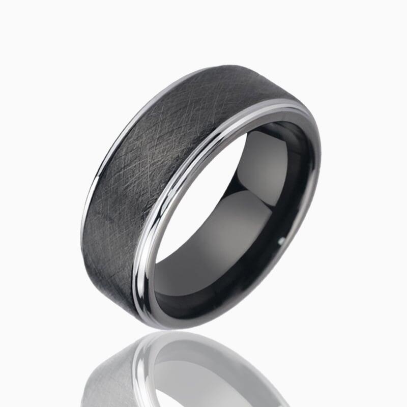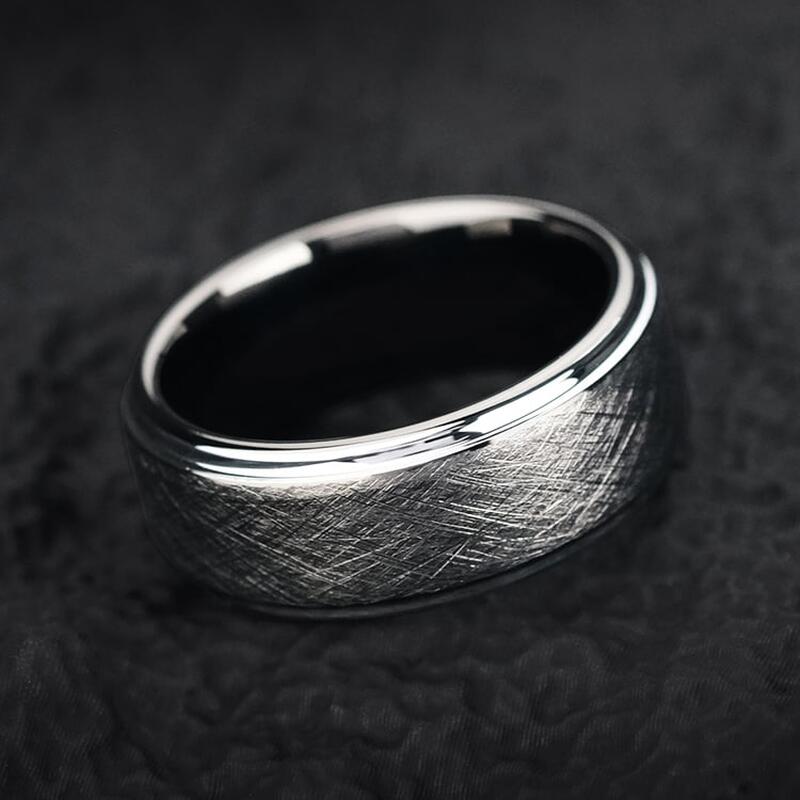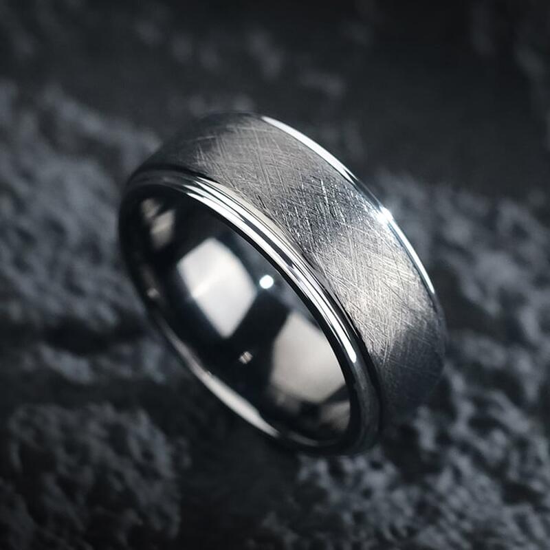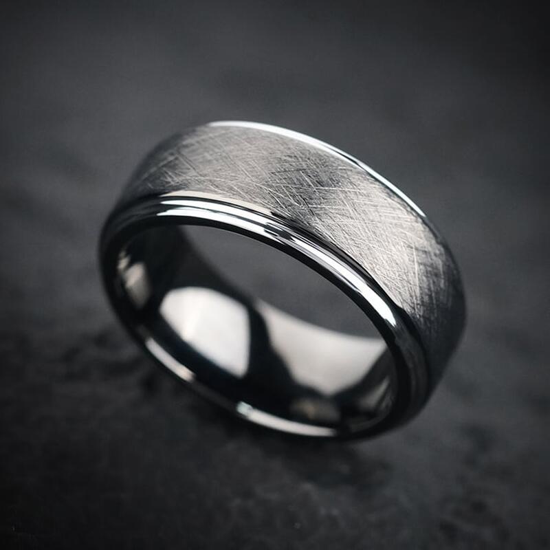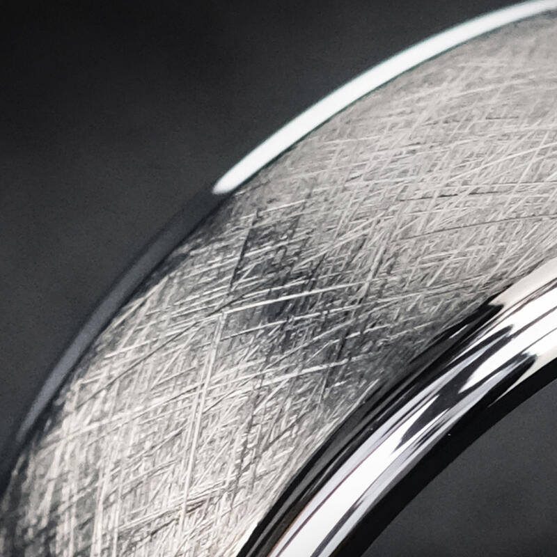 Hergestellt aus 85% Wolframkarbid mit außergewöhnlicher Widerstandsfähigkeit. Die kratzfeste Bürstenoberfläche behaltet ihren gedämpften Glanz ohne Polierbedarf. Hypoallergen und natürlich anlaufbeständig - entwickelt mit der Zeit eine edle Patina, die den charaktervollen Look unterstreicht.