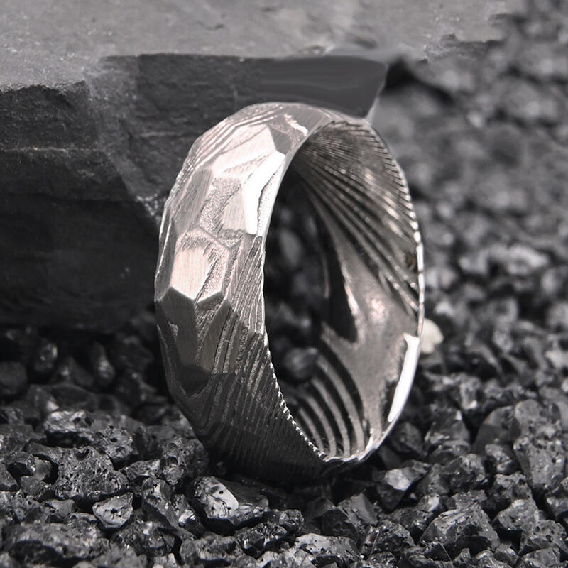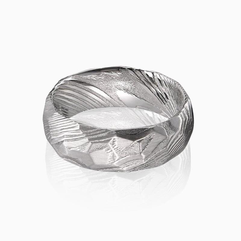 Geschmiedet aus Damaszener Stahl, betont dieser Ring die natürliche Stärke und einzigartigen Materialeigenschaften. Die raue, gehämmerte Oberfläche erhöht die ohnehin schon außergewöhnliche Robustheit des Stahls. Diese Kombination ergibt einen Ehering, der nicht nur beständige Verbundenheit symbolisiert, sondern auch eine urtümlich maskuline Ästhetik verkörpert. Ideal für Männer, die sowohl handwerkliche Präzision als auch ungezähmte Naturschönheit in ihrem Schmuck schätzen.