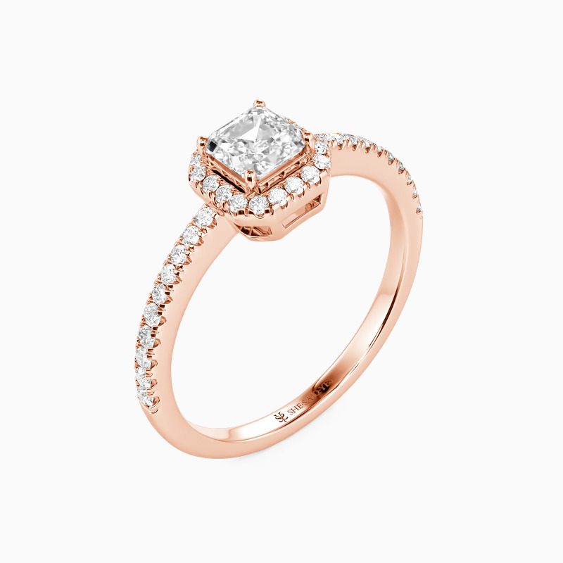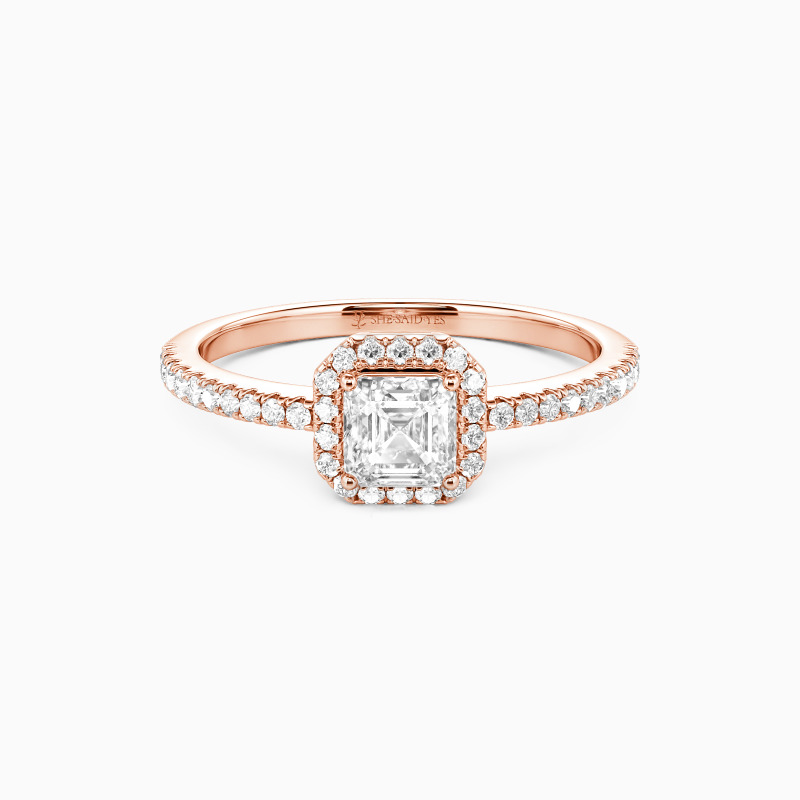 "Für Immer Mein Schatz" Verlobungsring mit Halo 0,8 ct Asscherschliff