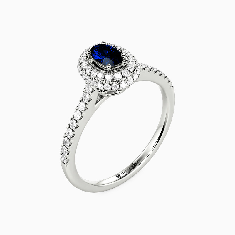 Dieser außergewöhnliche Halo-Verlobungsring verleiht Ihrer Hand eine magische Ausstrahlung. Der ovalgeschliffene Edelstein mit doppeltem Strahlenkranz wird durch präzise Handwerkskunst in Szene gesetzt. Die kunstvollen Rankenmotive und glänzenden Pavé-Steine unterstreichen die zeitlose Ästhetik. Als Sinnbild unvergänglicher Liebesversprechen kreiert SHE SAID YES ein Juwel, das jede Beziehung veredelt.