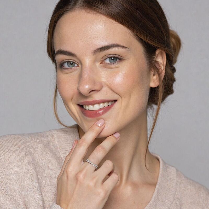 Dieser stapelbare Ring ist ein Blickfang für jede Schmucksammlung. Das Crossover-Design verleiht moderne Akzente. Die pavé-gesetzten Edelsteine reflektieren das Licht mit betörender Brillanz. Aus hochwertigen Materialien gefertigt, überzeugt er durch Langlebigkeit und Alltagstauglichkeit. Ob solo oder gestapelt - stets kreiert er einen einzigartigen Modestatement.