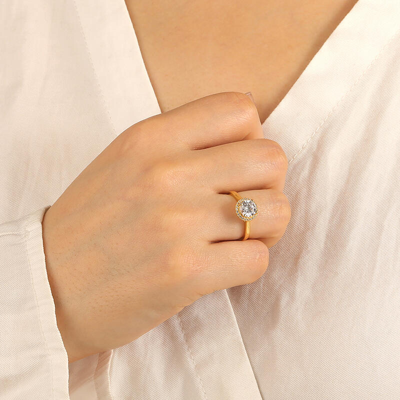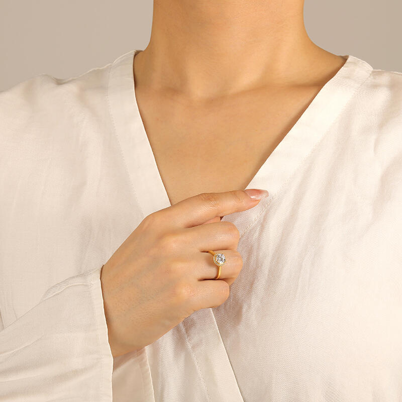 "Halt Mich Fester" Rundschliff-Halo-Verlobungsring