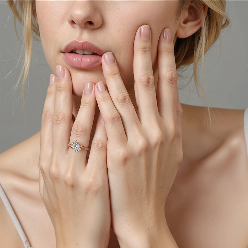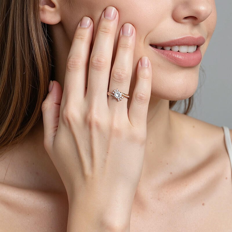 Stellen Sie die Frage mit Zuversicht, wenn Sie diesen funkelnden Seitenstein-Verlobungsring wählen. Er verfügt über einen glitzernden runden Hauptstein, der von sechs kleinen runden Steinen akzentuiert wird. Und der faszinierende Bypass-Ringkörper symbolisiert, dass sich Ihr Leben umeinander dreht. Ich liebe dich so sehr, und nichts wird meine Gefühle für dich ändern.