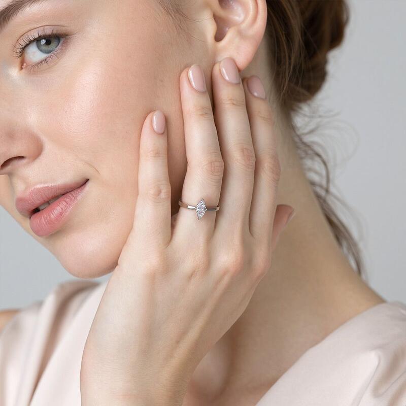 Die vierzackige Fassung verleiht einem Marquise-Schliff Stein ein klassisches Aussehen und lässt mehr Licht auf den Stein treffen, wodurch sein Glanz verstärkt wird. Schenken Sie diesen Ring Ihrer Geliebten, um ihr ewige Treue zu versprechen.