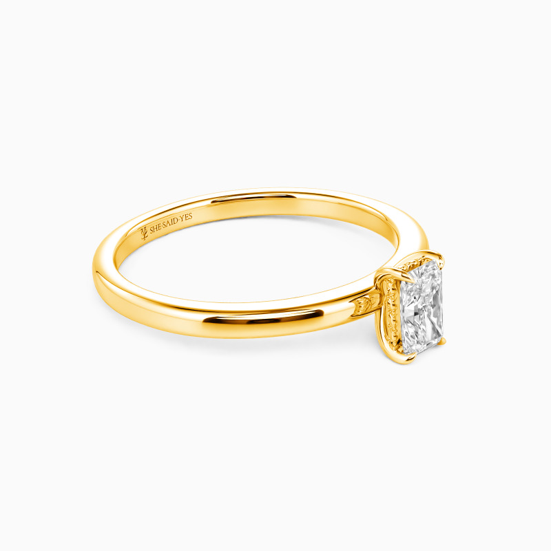 Dieser Solitär-Verlobungsring im Radiant-Schliff strahlt zeitlose Eleganz mit seinem funkelnden Mittelstein aus. Feine Perlendetails am Korb verleihen ihm kunstvolle Handwerkskunst, während das hochglanzpolierte Schäft seine schlanke, moderne Ausstrahlung unterstreicht. Eine perfekte Harmonie aus Brillanz und Raffinesse—dieser Ring verkörpert die Essenz ewiger Liebe.