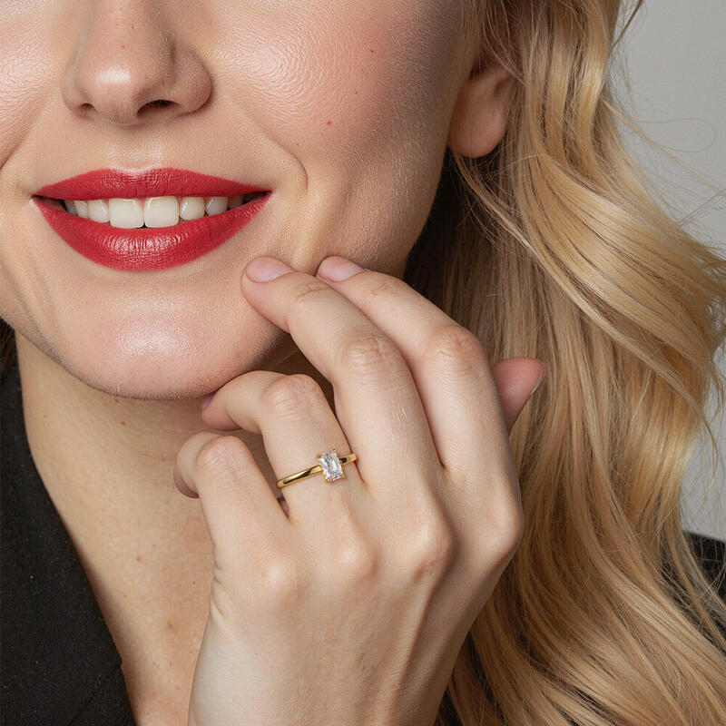 "Ich Schwöre, Es ist Wahr" Verlobungsring 0,8 ct Radiantschliff mit Seitensteinen