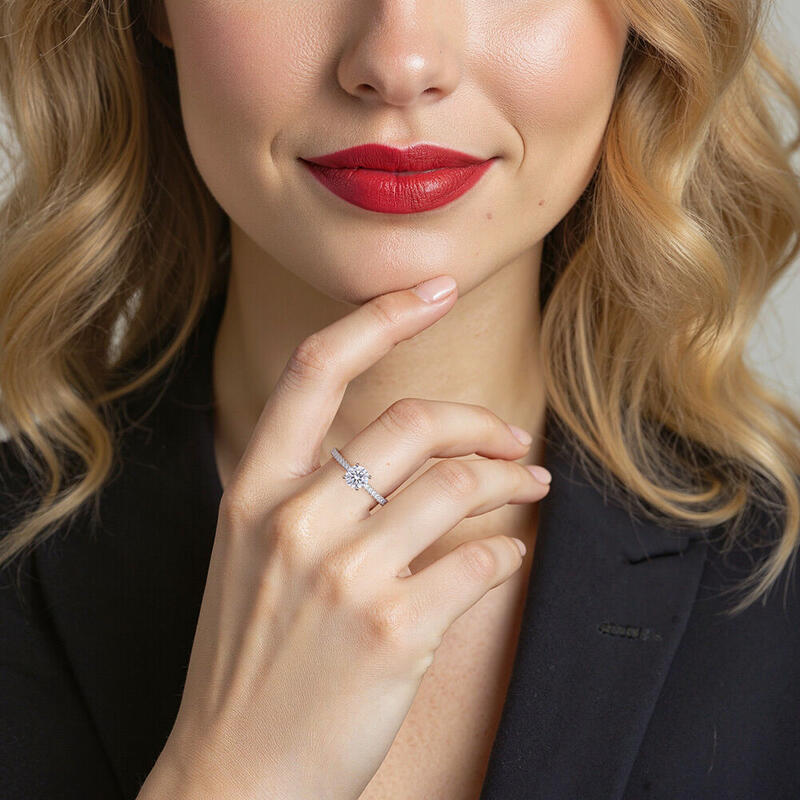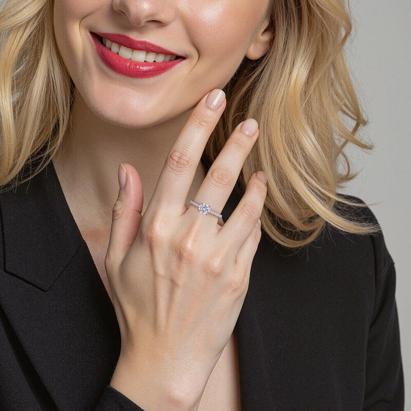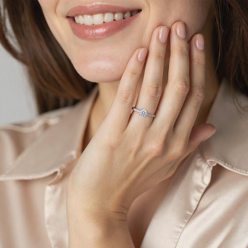 "Liebe Ist Licht" Verlobungsring 0,8 ct Rundschliff mit Seitensteinen