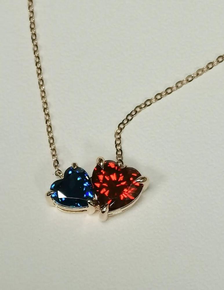 Diese exquisit gearbeitete Toi-et-Moi-Halskette verkörpert die Essenz der Romantik mit ihrem bezaubernden Design. Zwei herzförmig geschliffene Steine unterschiedlicher Größe ruhen eng beieinander und symbolisieren die einzigartige Verbindung zweier Seelen. Die anmutige Anordnung schafft eine beeindruckende visuelle Balance, während die kontrastierenden Dimensionen Tiefe und Faszination verleihen. Ein atemberaubendes Schmuckstück, das die harmonische Dualität der Liebe feiert.