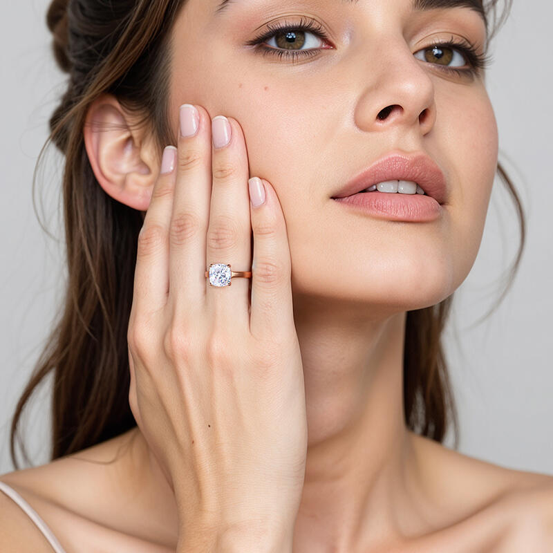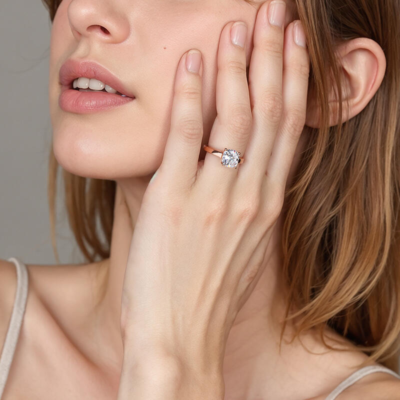 "Liebesgeschichte" 2,5ct Kissenschliff Solitär-Verlobungsring