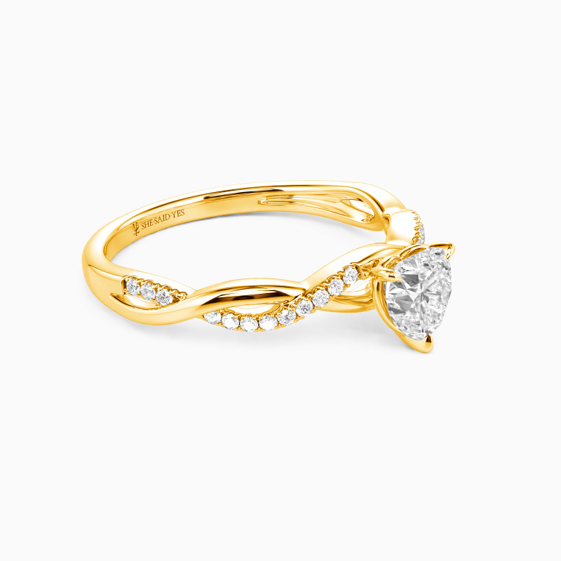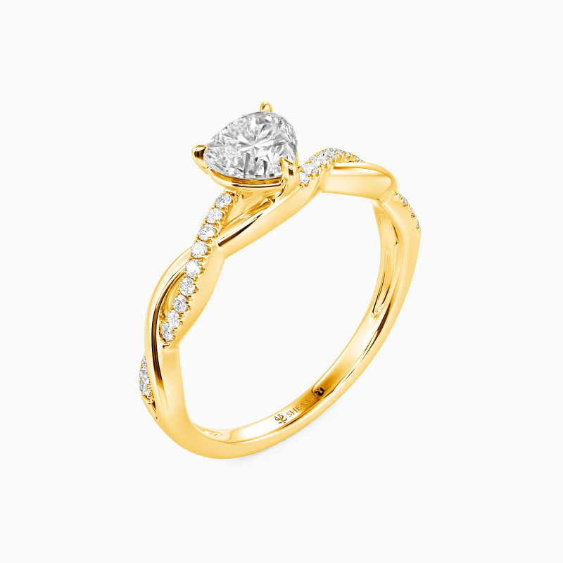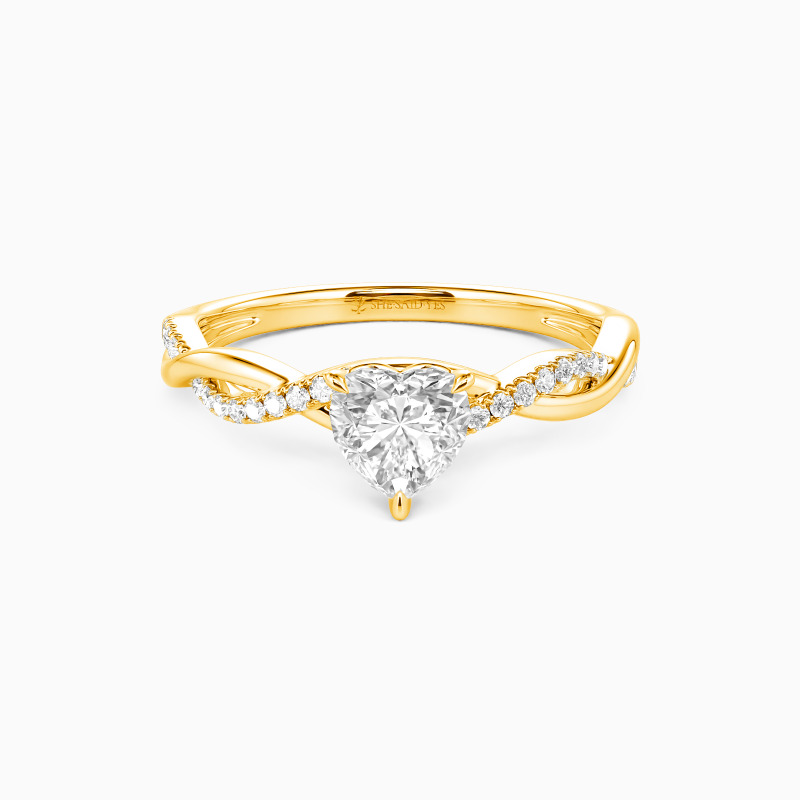 Feiern Sie die Reinheit Ihrer Liebe mit diesem exquisiten Verlobungsring. Der herzförmige Mittelstein wird von sicheren Haltegriffen umschlossen. Ein funkelndes Band mit Rundsteinen verschlingt sich mit einer polierten Metallspirale, was dem Design raffinierten Charme verleiht. Mit zeitloser Eleganz symbolisiert dieser Ring perfekt Ihre ewige Verbundenheit.