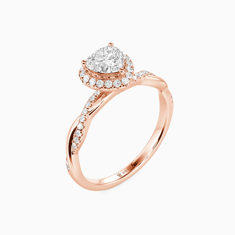 Herzschlag der Ewigkeit: Der bezaubernde Verlobungsring mit Herzschliff-Zentralstein wird von strahlendem Lichtkranz umarmt. Der gedrehte Schank zitiert gotisches Maßwerk – »Gedrehte Säulen des Kölner Doms«, vollendet in Aachener Goldschmiedekunst mit Anklängen an rheinische Minnelied-Ikonographie.