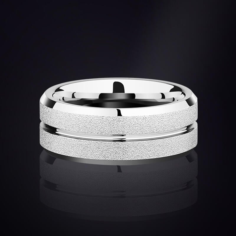 Dieser Herren-Ehering strahlt dezente Männlichkeit aus mit seiner raffinierten Sandstrahl-Optik, die eine strukturierte, matte Oberfläche bietet - kratzfest und dennoch mit robustem Charme. Ein schlanker Mittelkanal verleiht moderne Eleganz, gerahmt von abgeschrägten Kanten für perfekten Tragekomfort - eine zeitlose und doch zeitgemäße Aussage.