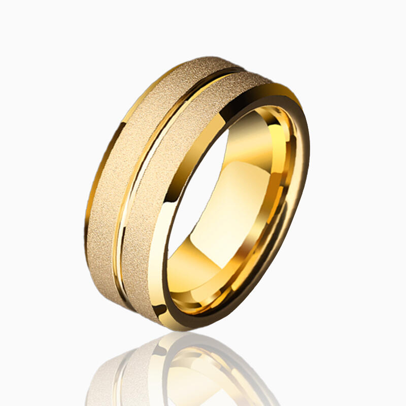 Hergestellt aus 85% Wolframkarbid bietet dieser Ring unübertroffene Haltbarkeit und Kratzfestigkeit. Die vollständige Goldbeschichtung veredelt das Erscheinungsbild mit warmer Brillanz, während der hypoallergene Wolframkern dauerhaften Komfort gewährleistet. Für den täglichen Gebrauch konzipiert, vereint dieser Ring Widerstandsfähigkeit mit anspruchsvollem Stil - für lebenslange Eleganz.