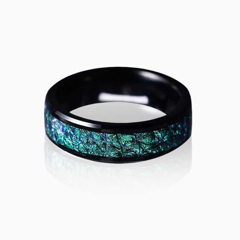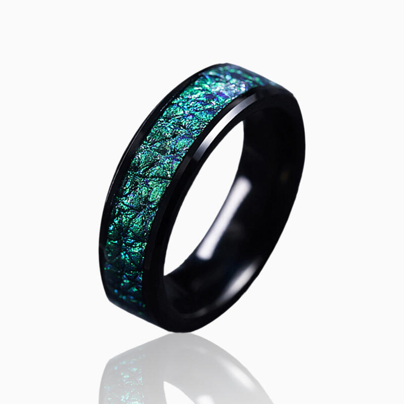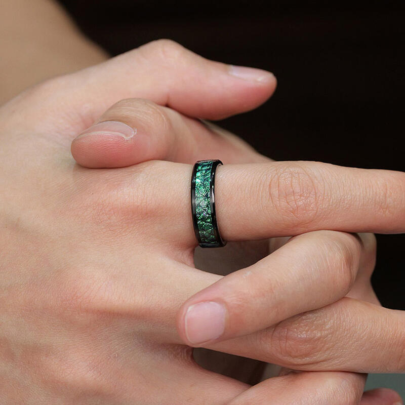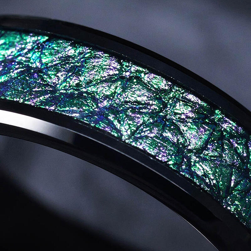 Gefertigt aus 85% Wolframkarbid, bietet der Ring einzigartige Widerstandsfähigkeit bei gleichbleibend polierter Oberfläche. Die kratz- und anlaufbeständige Legierung garantiert lebenslangen Tragekomfort. Die fluoreszierenden Grün-Intarsien bilden mit dem dunklen Metall einen atemberaubenden Kontrast und symbolisieren damit eine Liebe, die so beständig ist wie das Material selbst. Besonders hypoallergen und mit perfekter Gewichtsbalance für den täglichen Gebrauch konzipiert.