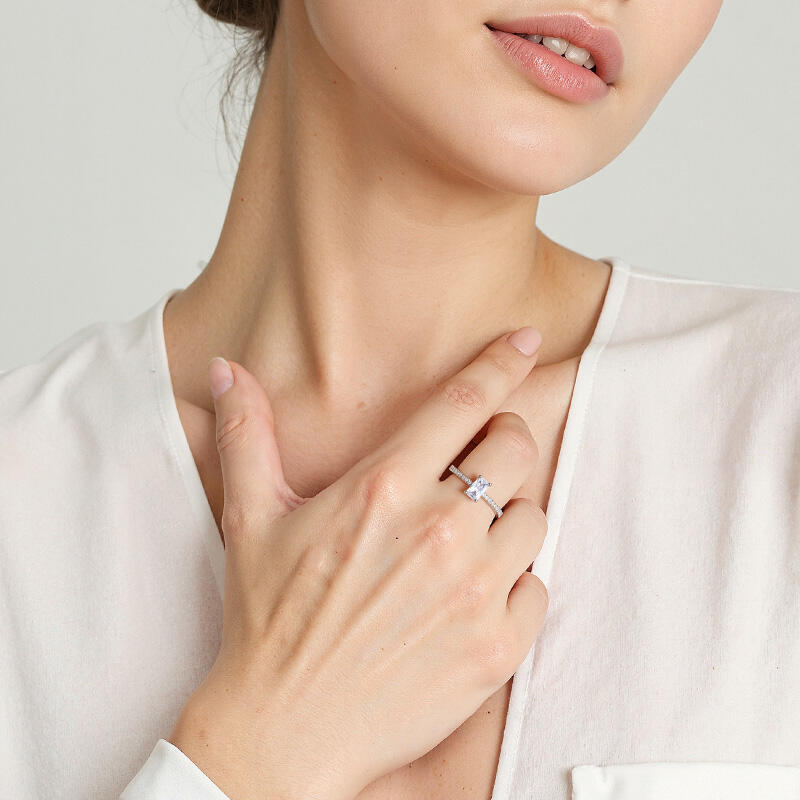 "Auf Liebe Schwören" Verlobungsring 0,8 ct Radiant-Schliff mit Seitensteinen