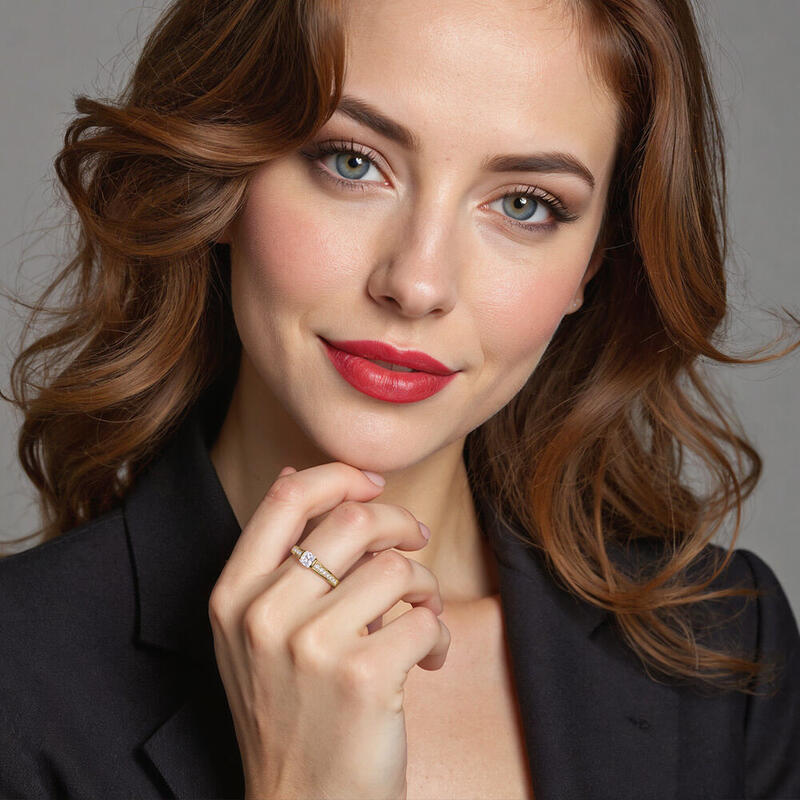 "Die Milchstraße" Verlobungsring 0,6 ct Radiantschliff mit Seitensteinen