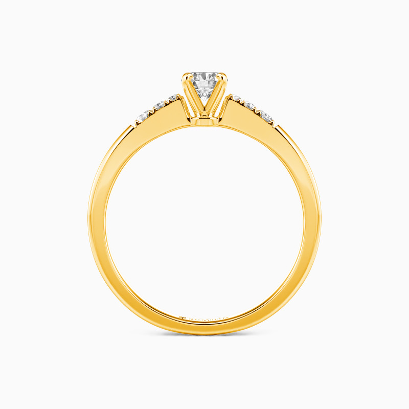 Dieser exquisiter Verlobungsring zeigt einen funkelnden Rundschliff-Mittelstein, der von vier zarten Krallen gehalten wird. Sein zeitloses Design strahlt Eleganz und Raffinesse aus und hinterlässt einen bleibenden Eindruck. Die glitzernden Seitensteine verstärken die Anziehungskraft des Rings und fügen eine Prise Verzauberung hinzu, die die gemeinsame Reise der Liebe und Hingabe symbolisiert. Schenken Sie diesen außergewöhnlichen Ring als Beweis Ihrer unerschütterlichen Liebe und sichern Sie sich einen Heiratsantrag, der für immer in Erinnerung bleiben wird.
