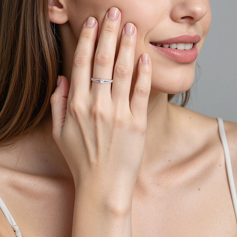 Dieser gleißend helle Verlobungsring versetzt in Staunen. Die gegabelte Schulter erhält durch das einzigartige Design moderne Eleganz. Flankierende Glitzersteine rahmen den brillanten Ovalstein im Zentrum – ein elegantes Meisterwerk, das Ihre unerschütterliche Liebesbotschaft verkörpert. Mit diesem Ring zeigen Sie ihr, dass sie alles ist und mehr als Sie je brauchen werden.