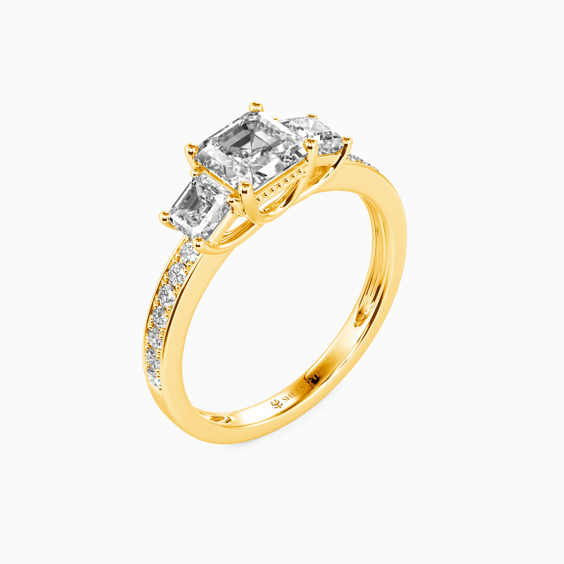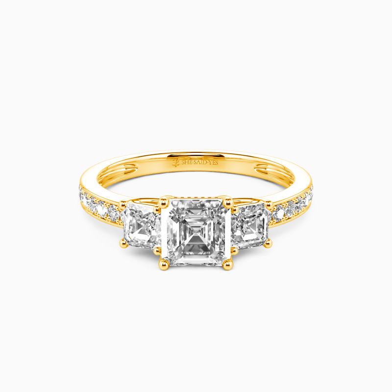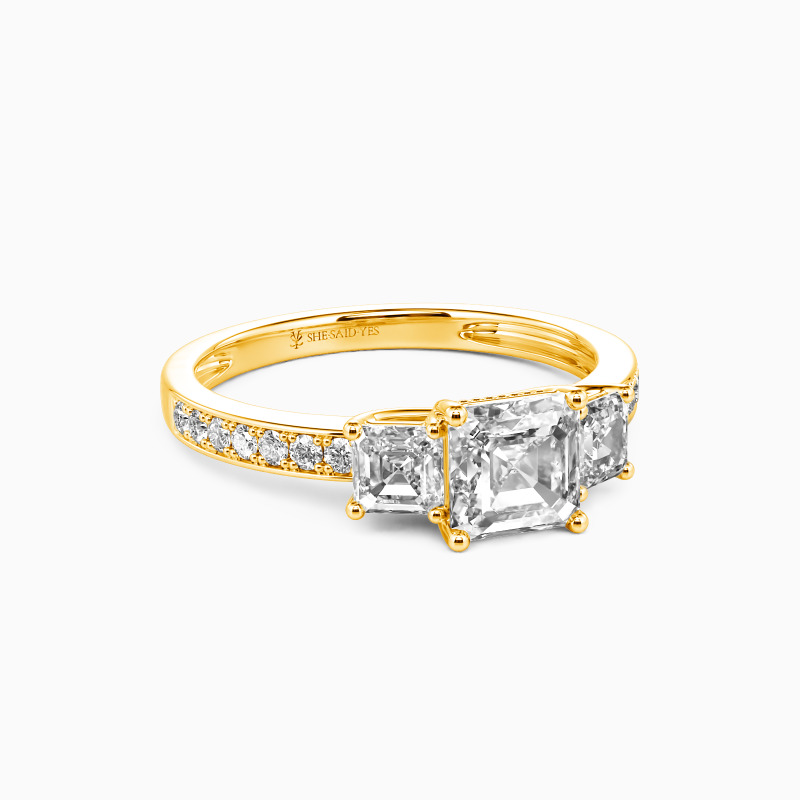 "Du Bist Mein Engel" 1 Karat Asscher-Schliff Drei-Stein-Verlobungsring