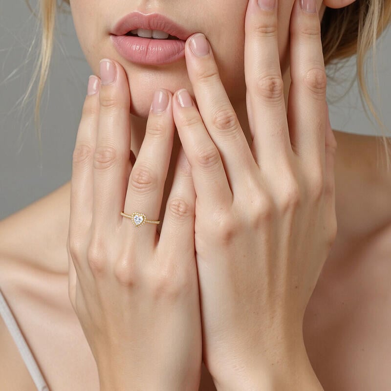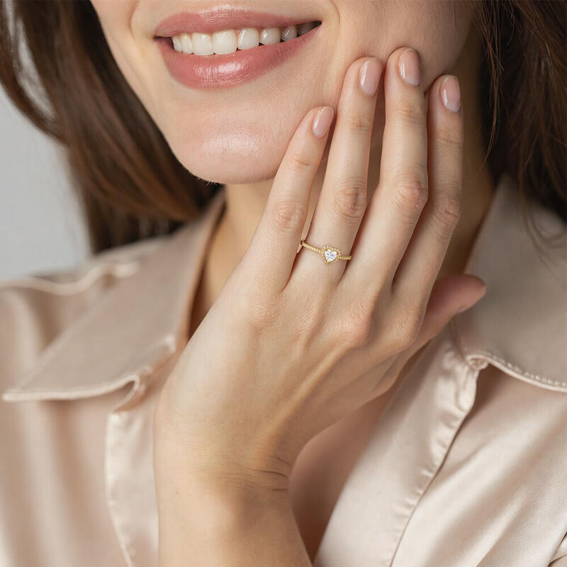 Umgeben von einem Kreis funkelnder Steine wird der Zentralstein als Gesamtkunstwerk in Szene gesetzt. Mit kunstvollem und elegantem Design symbolisiert dieser Herz-Halo-Verlobungsring treue Verbundenheit beim Tragen. Du bist mein Ein und Alles – dir mein Herz zu schenken, ist die romantischste Geste meines Lebens.