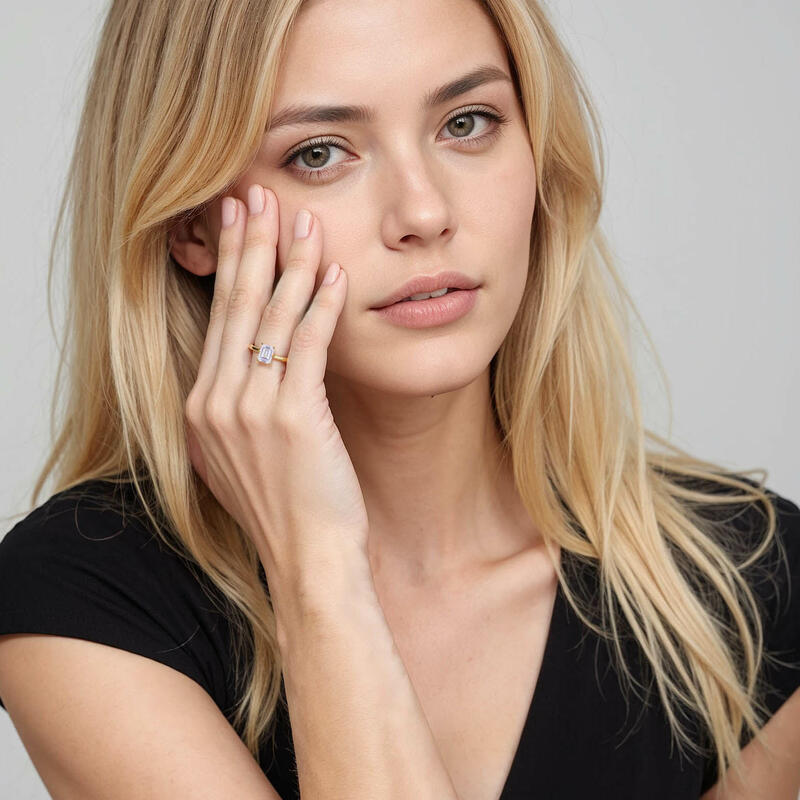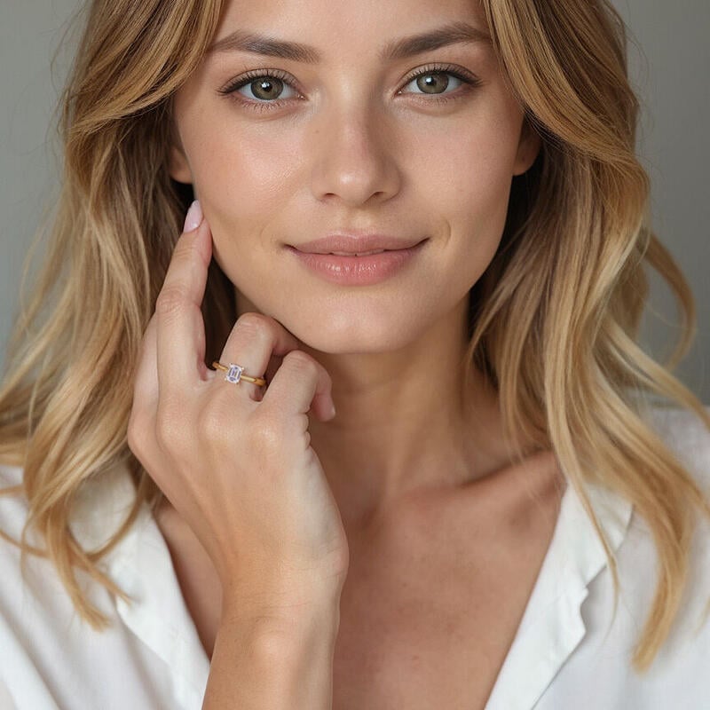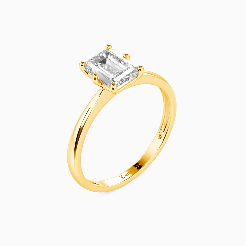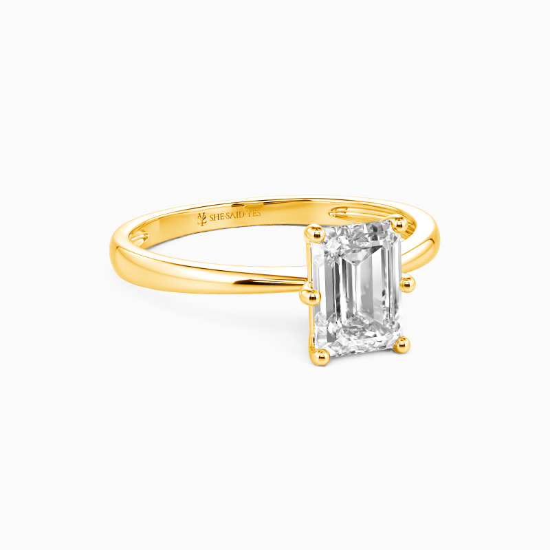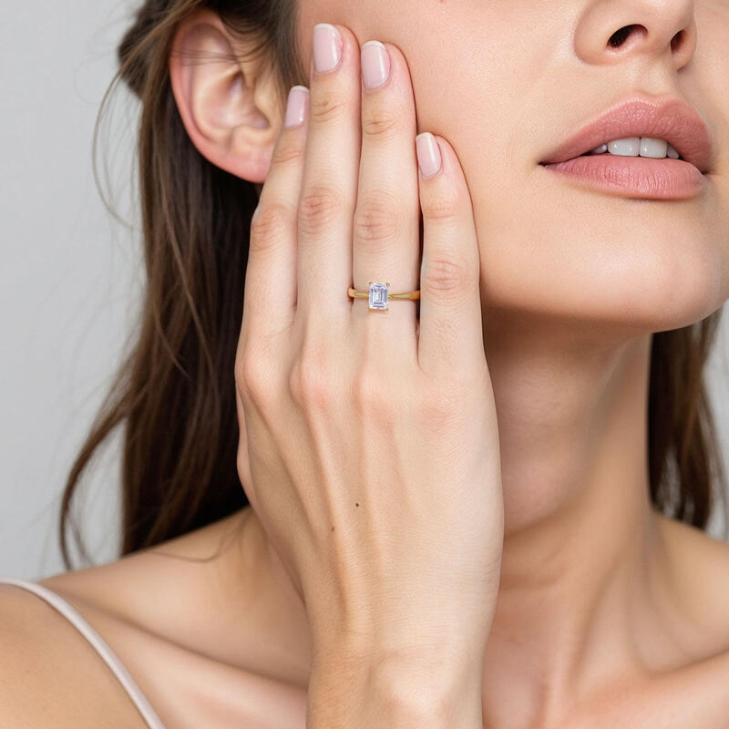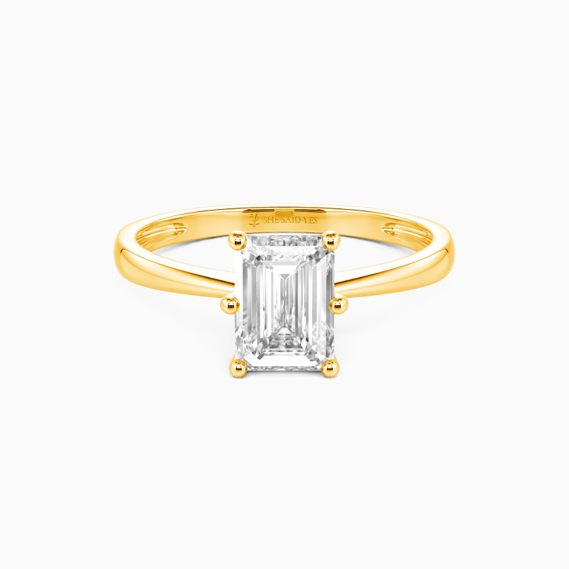 Dieses brillante Emerald-Solitärstück zeichnet sich durch klare, feinste Linien und exquisit geschwungene Schultern aus, die sich zum Mittelstein hin erheben. Mit diesem Solitär-Design sind Sie stets von strahlender Eleganz durchdrungen.