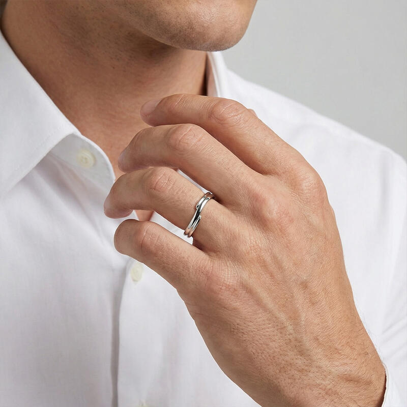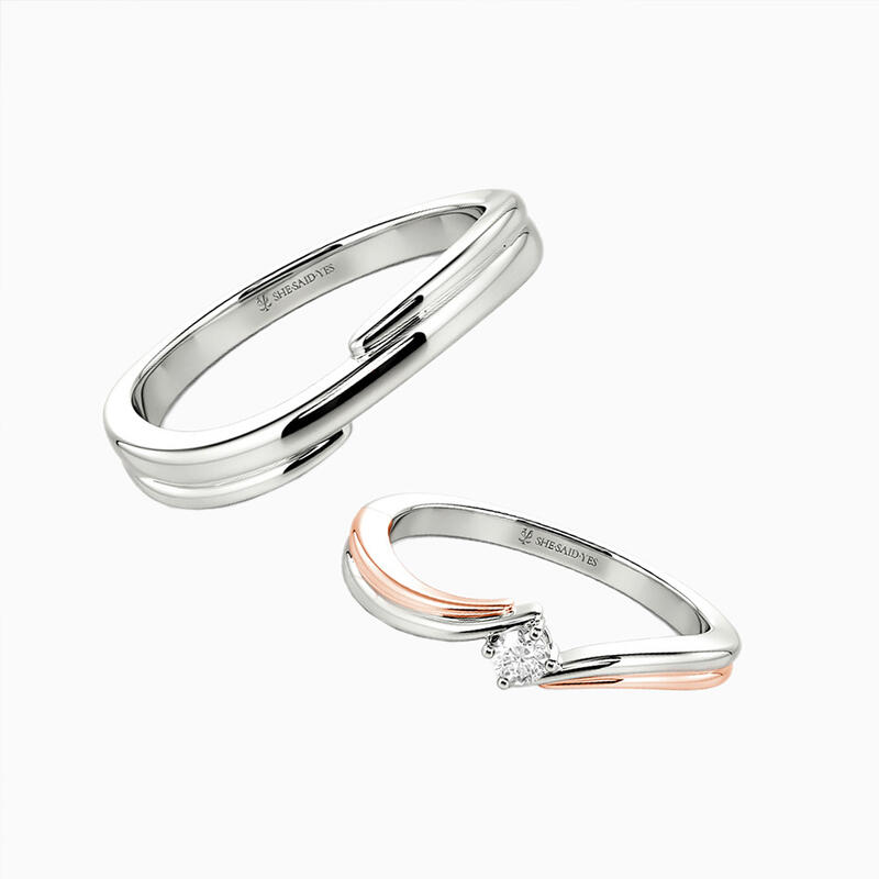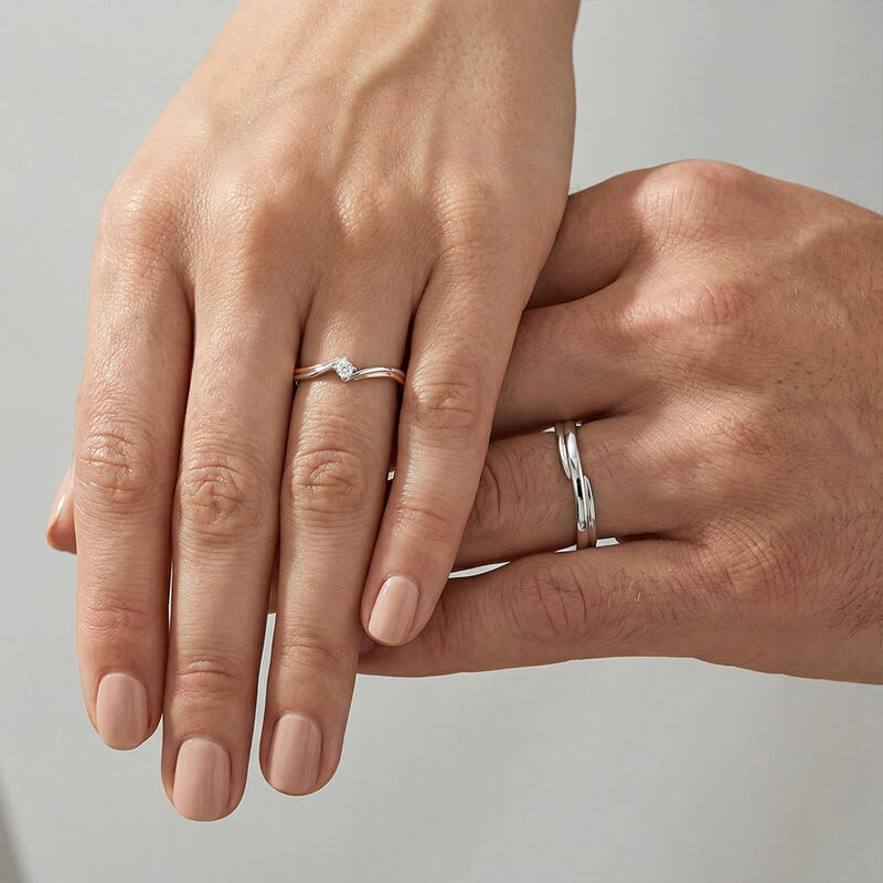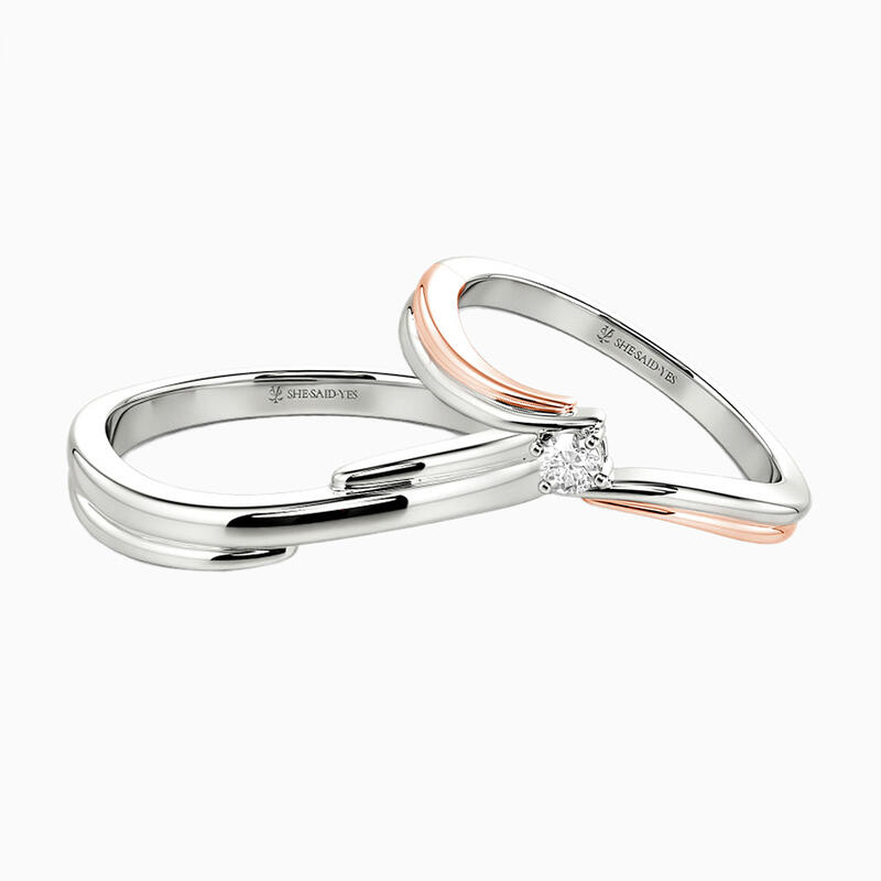 Diese von der Natur inspirierten Ringe weben eine organische Romanze: Ihr umschlingender Schank blüht mit gemischten Metallen auf, ein brillanter Runddiamant ruht dort, wo sich die Zweige treffen. Sein hochglanzpoliertes Band fließt mit stiller Stärke. Keine Spiegelbilder, sondern perfekte Ergänzungen – sie das kunstvolle Rankwerk, er der beständige Stamm, zusammen ein organisches Symbol dauerhafter Einheit.