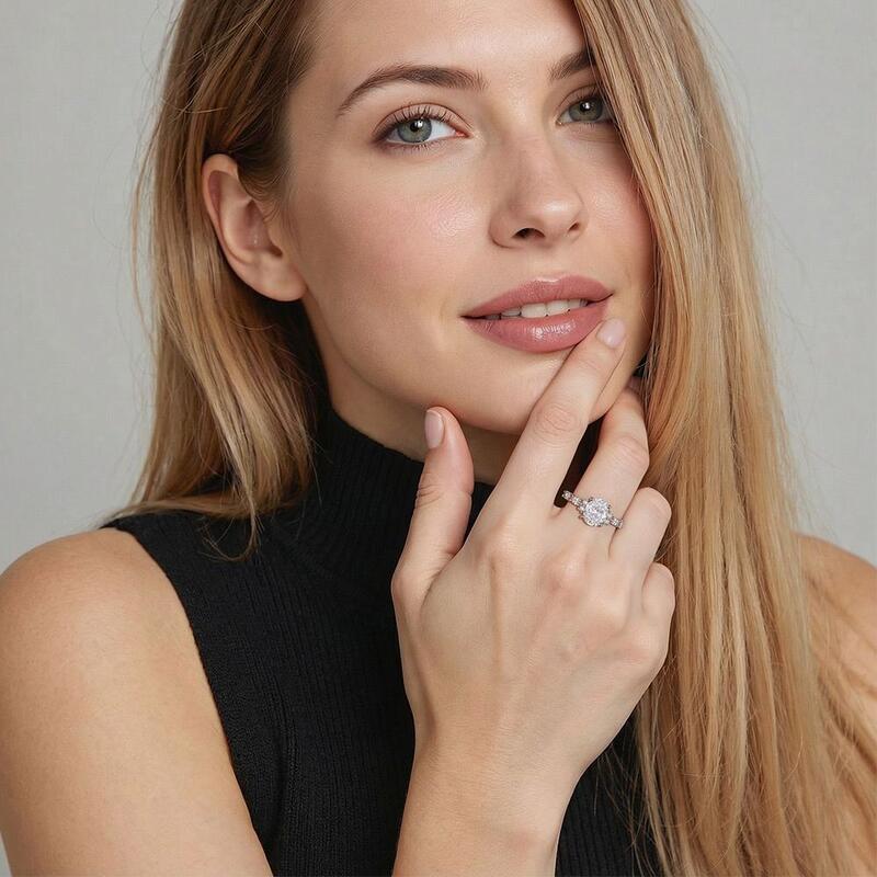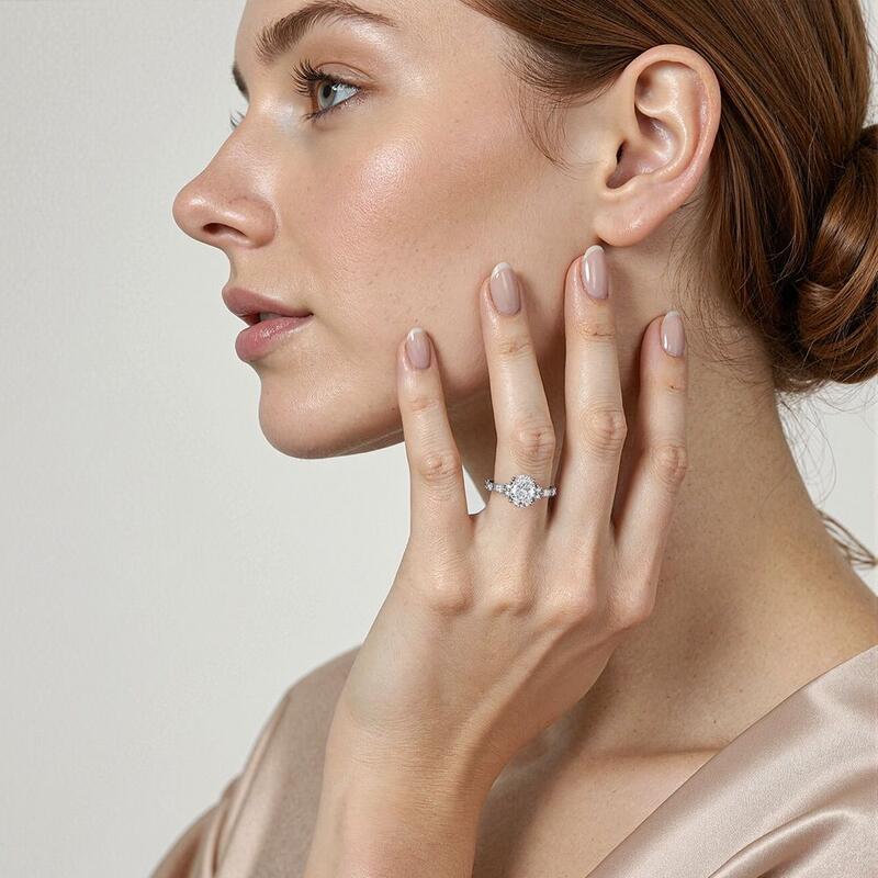 Dieser elegante Seitensteinring präsentiert einen strahlenden ovalen Mittelstein, harmonisch flankiert von runden und Marquise-Akzenten. Die fließende Anordnung bildet einen zarten, blütenblattartigen Rahmen, der die sanften Kurven des Zentralsteins betont. Entstanden ist ein Design von zurückhaltender Romantik und fesselndem Brillanzfeuer – perfekt für ein zeitloses Versprechen.