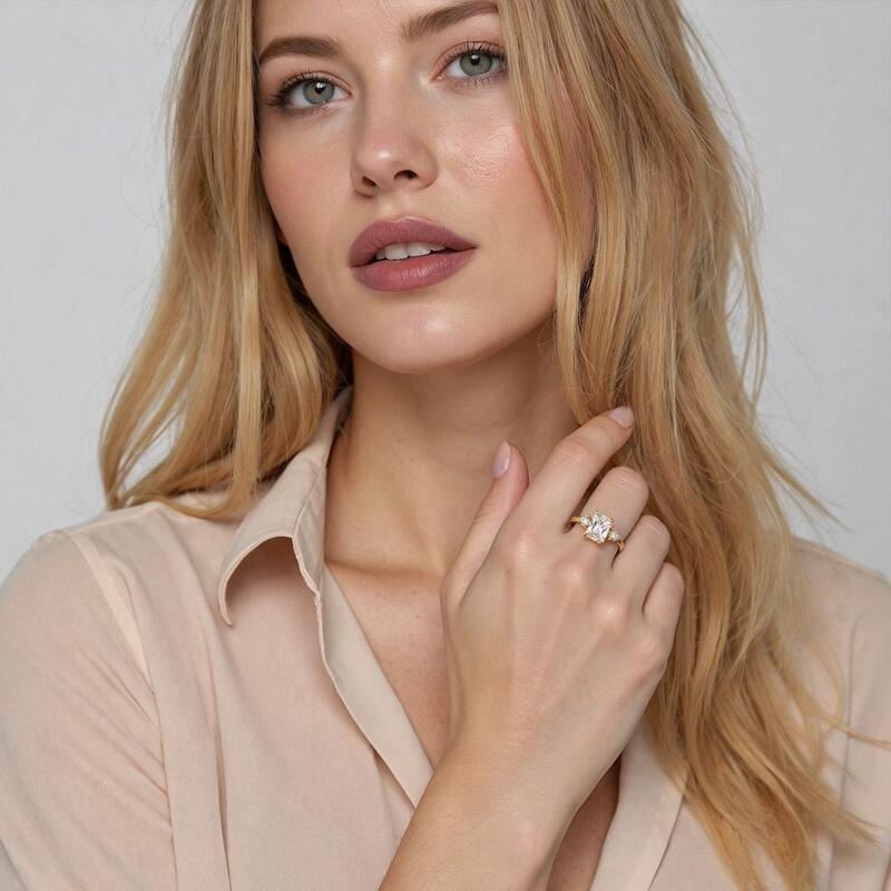 "Jeder Moment mit Dir" Dreistein-Verlobungsring mit Radiant-Schliff