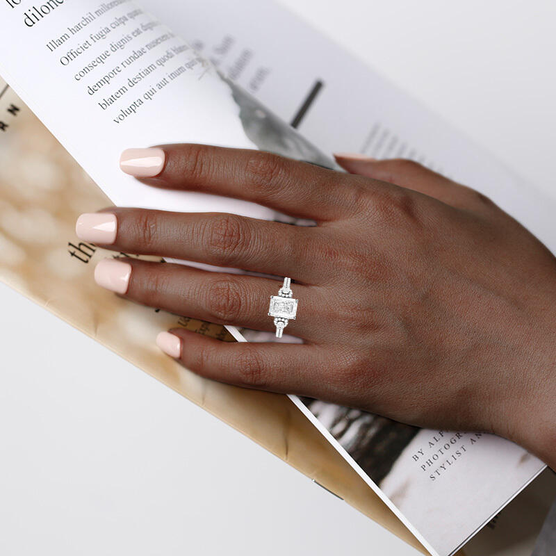 "Mein Strahlendes Gelübde" Verlobungsring Radiantschliff mit Seitensteinen