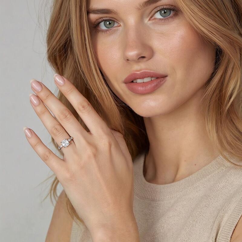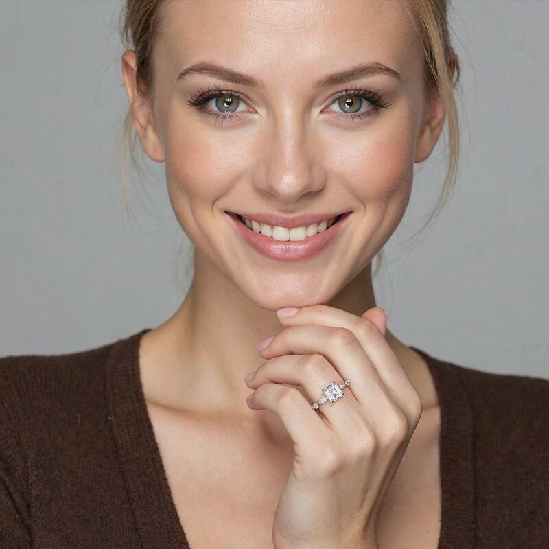 "Unser perfekter Rhythmus" Verlobungsring mit Asscherschliff und Seitensteinen