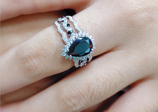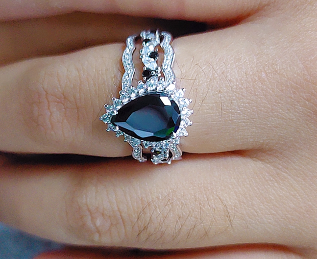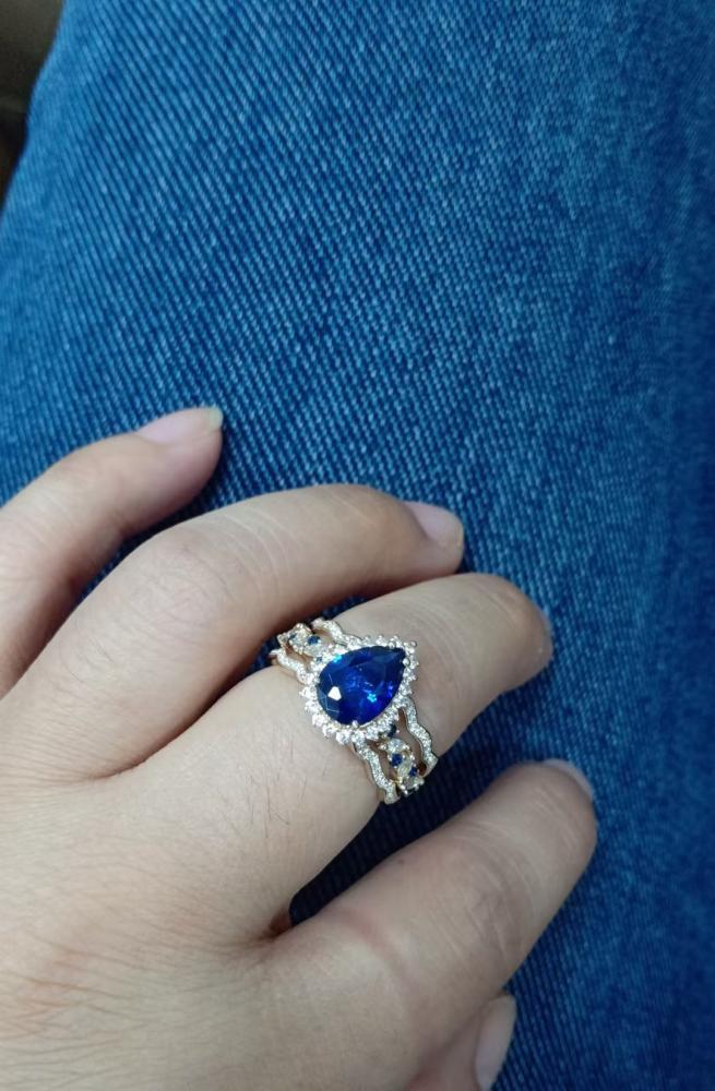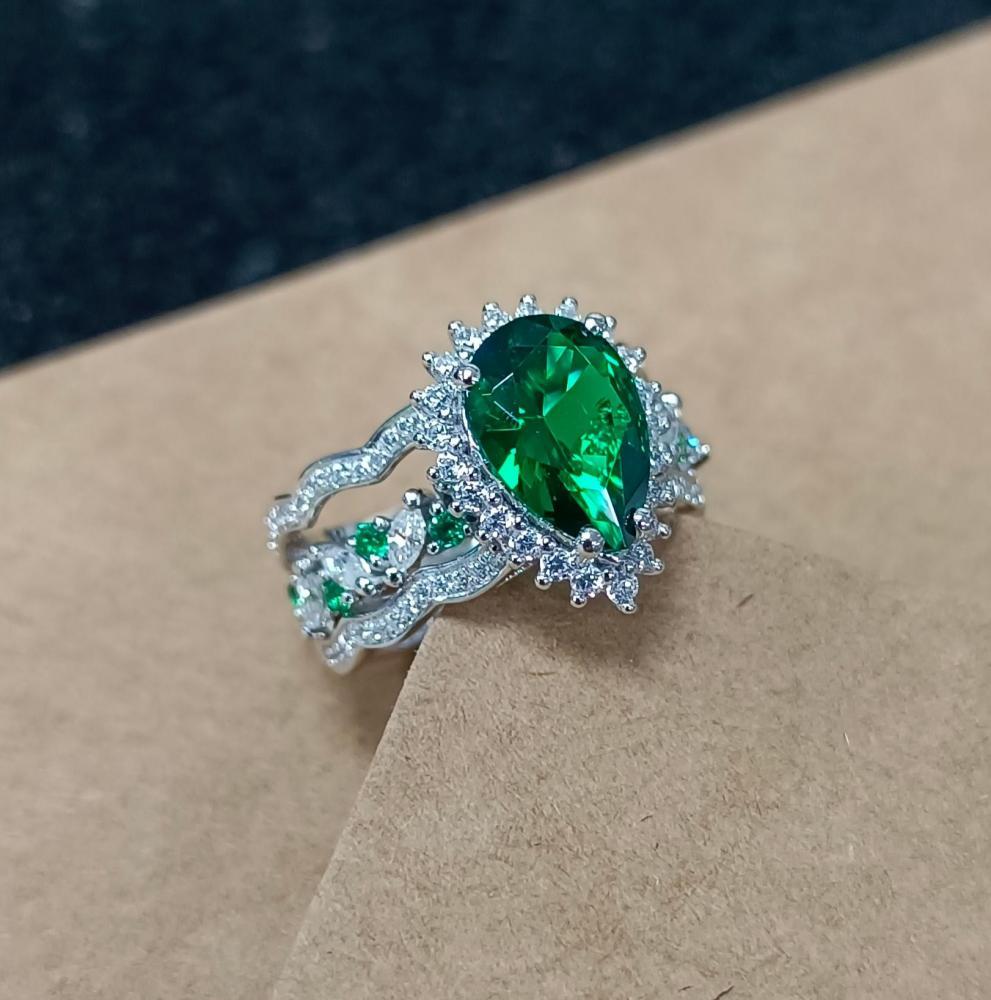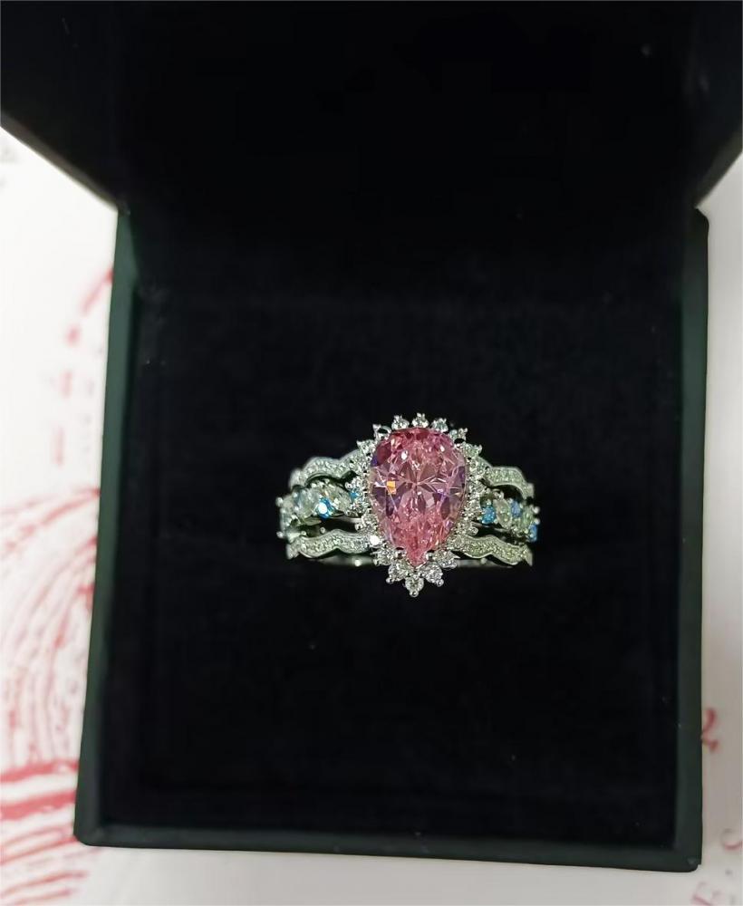 Entdecken Sie Ihre Bewunderung für diesen kostbaren Ring und spüren Sie seine Pracht. Ein funkelnder birnenförmiger Mittelstein, umgeben von einem glitzernden Halo, erstrahlt auf dem wellenförmigen Schäft. Passende Bandakzente mit marquise- und rundgeschliffenen Steinen in kunstvollen Gruppen verleihen diesem austauschbaren Brautschmuck einen zeitlosen Glamour für jede Frau.