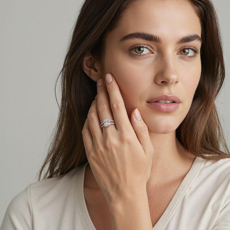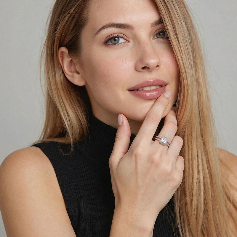 "Die Gegenseitige Zuneigung" Halo-Verlobungsring mit Radiantschliff