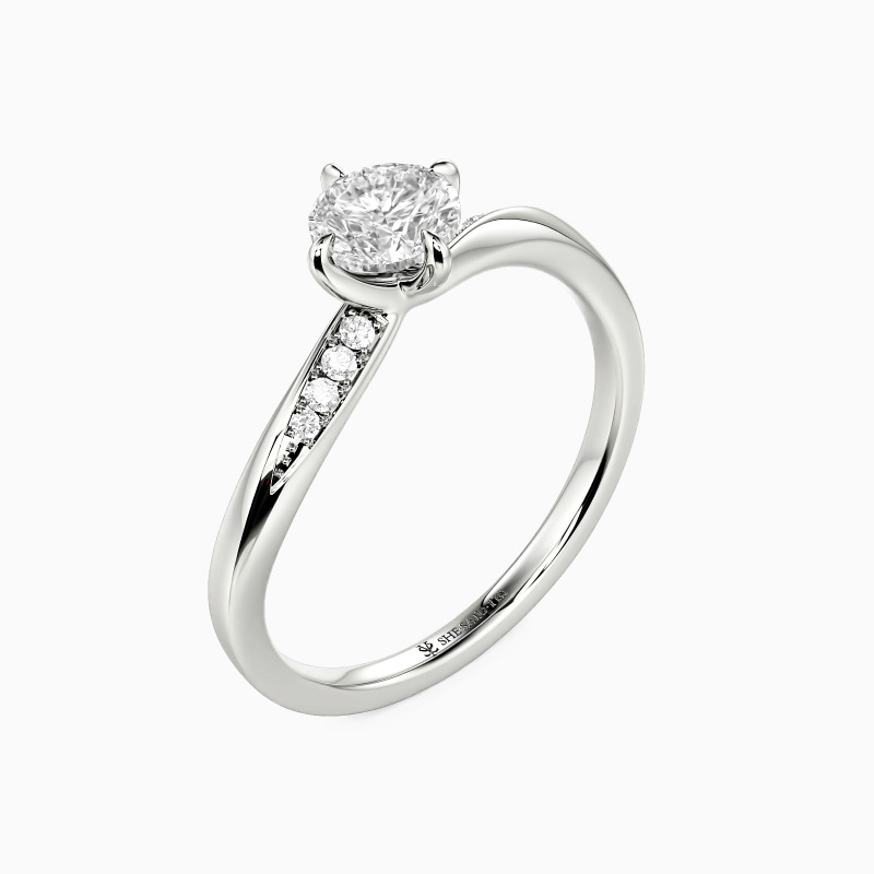 "Die Gezeiten" Verlobungsring mit Rundschliff und Seitensteinen