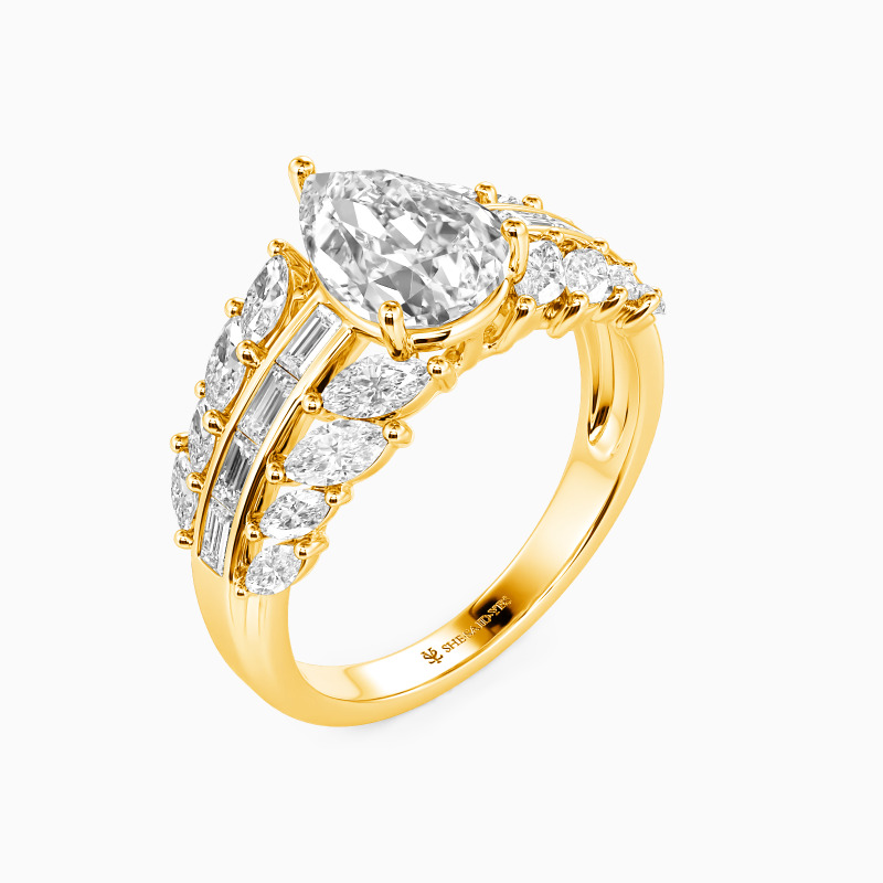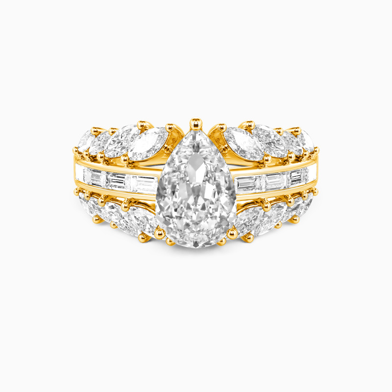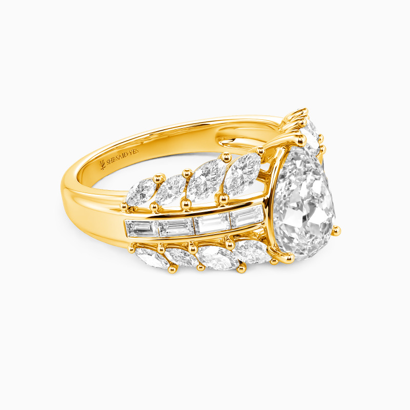 "Die Sich Entfaltende Ewigkeit" Birnenförmiger Verlobungsring mit Seitensteinen