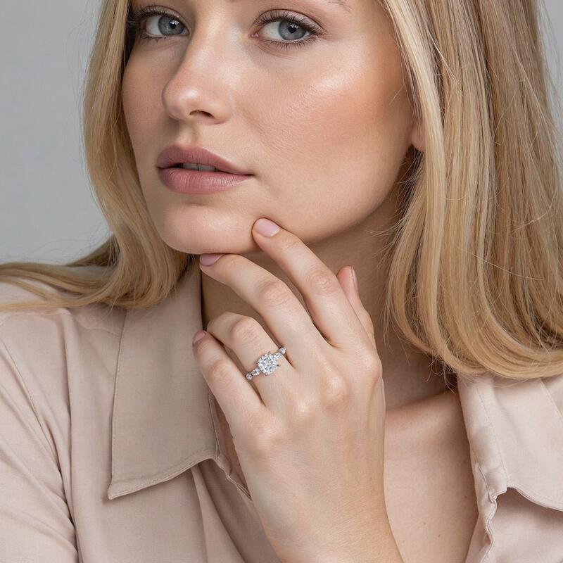 "Kostbare Momente" Kissen-Verlobungsring mit Seitensteinen
